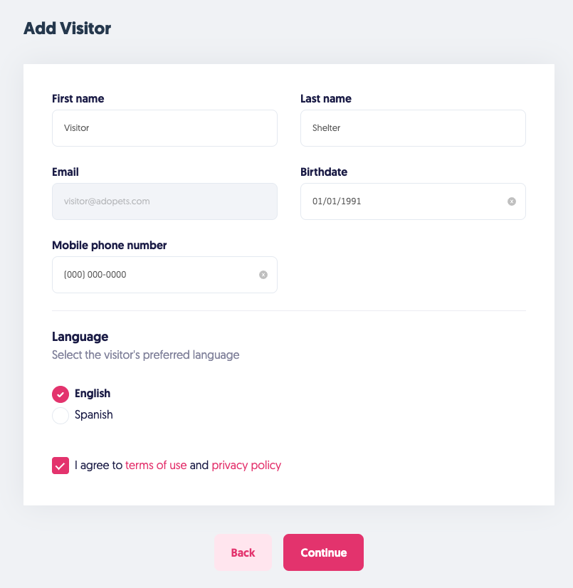 Add the visitor's Information.
