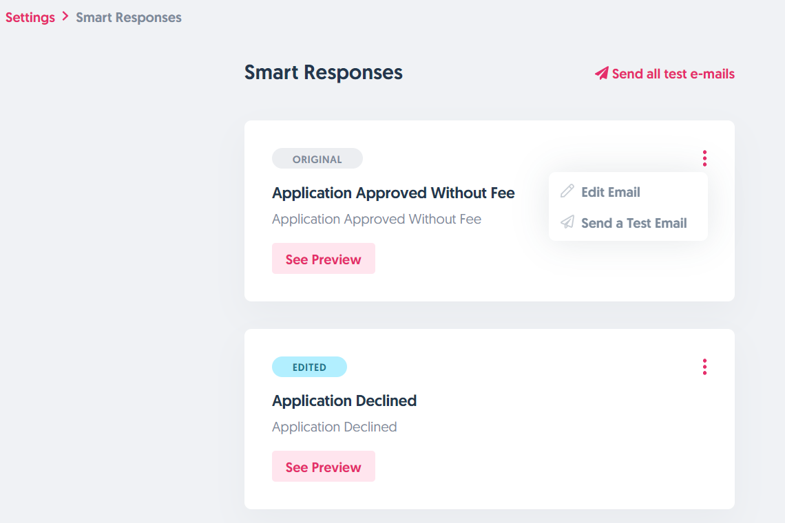 Make sure that your adopters are up-to-date with their applications by setting up automatic email notifications. Follow the steps on how to set up your Smart Responses below: