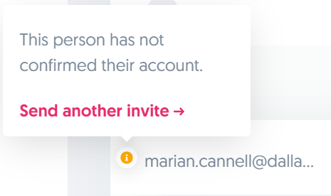 Note that these team members will have an Information icon before their email addresses.